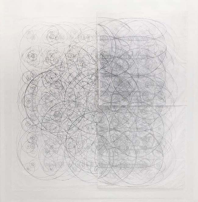 Acrylique, vernis, crayon de maçon sur toile et Tergal, 220 x